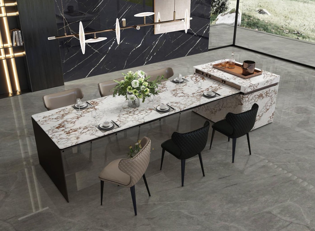 When paired with avant-garde design schemes, Carrara Moro Quartz Slab becomes the centerpiece of fearless creativity. Imagine it in a modern kitchen with angular, matte black cabinetry—the golden veins pop against the dark tones, creating a dramatic contrast that feels both edgy and upscale. In a bold bathroom concept, it pairs exquisitely with brass fixtures and geometric mirrors, infusing the space with a sense of curated chaos that’s undeniably chic. Even in more subdued modern settings, its 纹理 (texture) adds a layer of depth that elevates minimalist designs from simple to statement-making. It never feels out of place, whether the aesthetic is industrial-modern, Scandinavian-chic, or contemporary-glam—its versatility lies in its ability to adapt while remaining unapologetically bold.