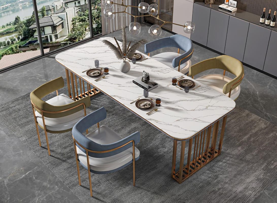 This slab is a match made in design heaven for opulent, classic-modern aesthetics. In high-end classic interiors (think luxury villas or heritage-inspired manors), its gold veins add a regal touch to traditional Carrara-inspired spaces. For modern luxury designs with sleek lines and metallic accents, it acts as a focal point, bridging the gap between bold contemporary elements and timeless stone charm. Even in transitional spaces that blend old-world elegance and new-age minimalism, Venato Gold Quartz Carrara shines—its grey-gold interplay complements rich woods, polished metals, and soft neutral palettes alike. It’s the go-to for projects that demand “wow factor” without sacrificing design coherence.