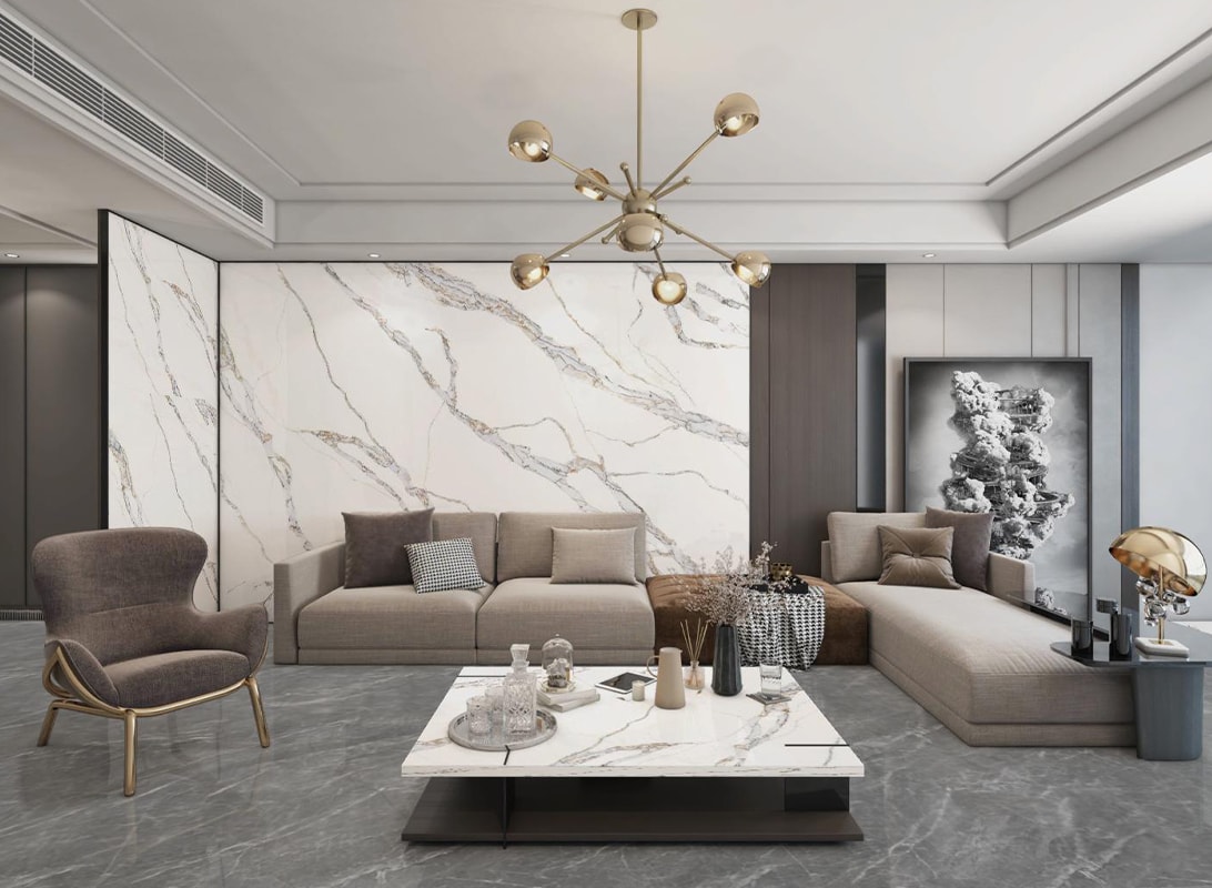 Product Style: Fusion of Classic Carrara & Modern Gold-Infused Opulence
